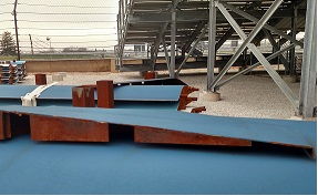 The Indy Speedway uses FIA compliant bidirectional curbing on their road course, which they fabricated themselves.They also use custom-fabricated removable curbing that can be used as-needed for different course configurations and events. This removable curbing is installed and anchored to the track to provide secure and safe curbing where needed.